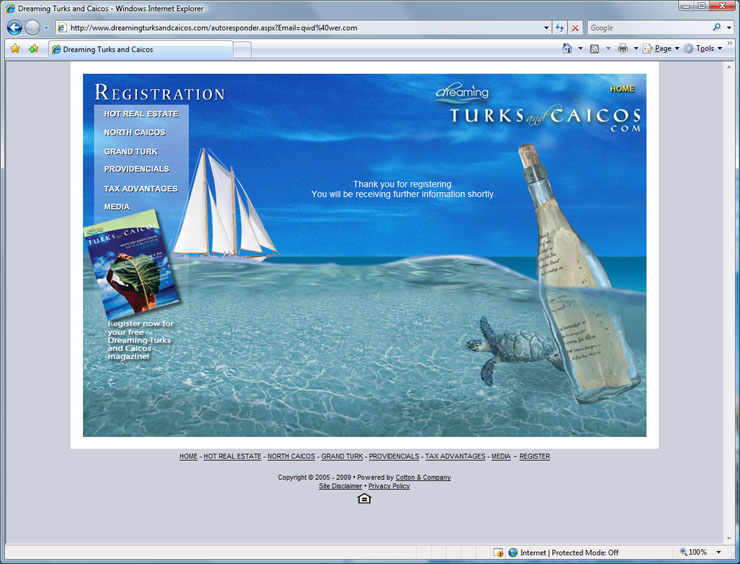 HTML website for resort and time share in Turks and Caicos. Featuring detailed photoshop collages.
