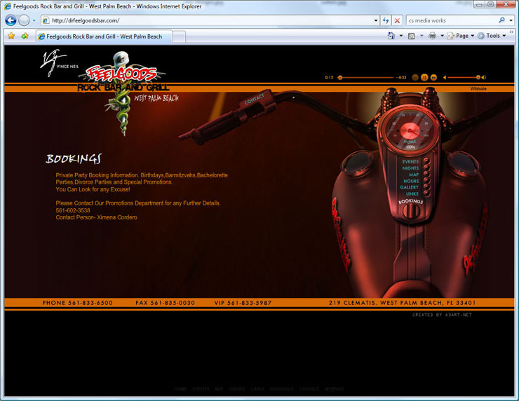 Designed and Programmed website for Vince Neil of Motley Crue’s new nightclub in West Palm Beach. Full database driven Flash with Content Management System.