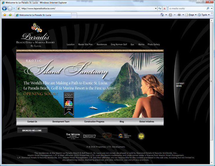 Flash/ASP website for resort and time share in St. Lucia. Featuring page flipping animation.