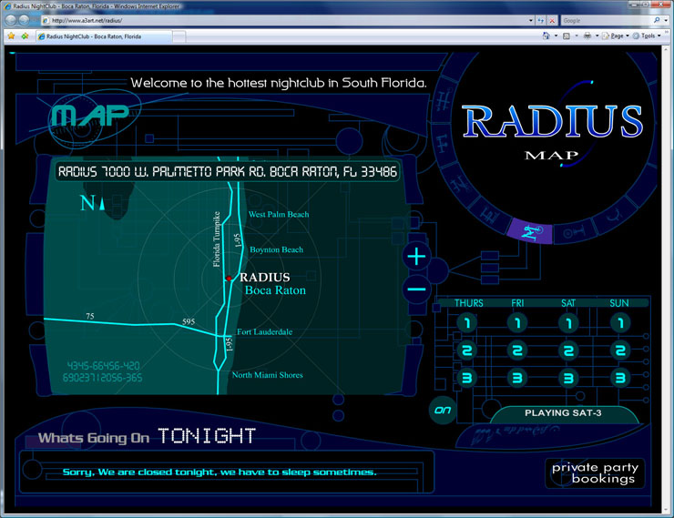 Created full flash web presence site for hot nightclub in West Palm Beach. Shot photos, edited photos, shot video, made all graphics, setup all HTML and CSS.